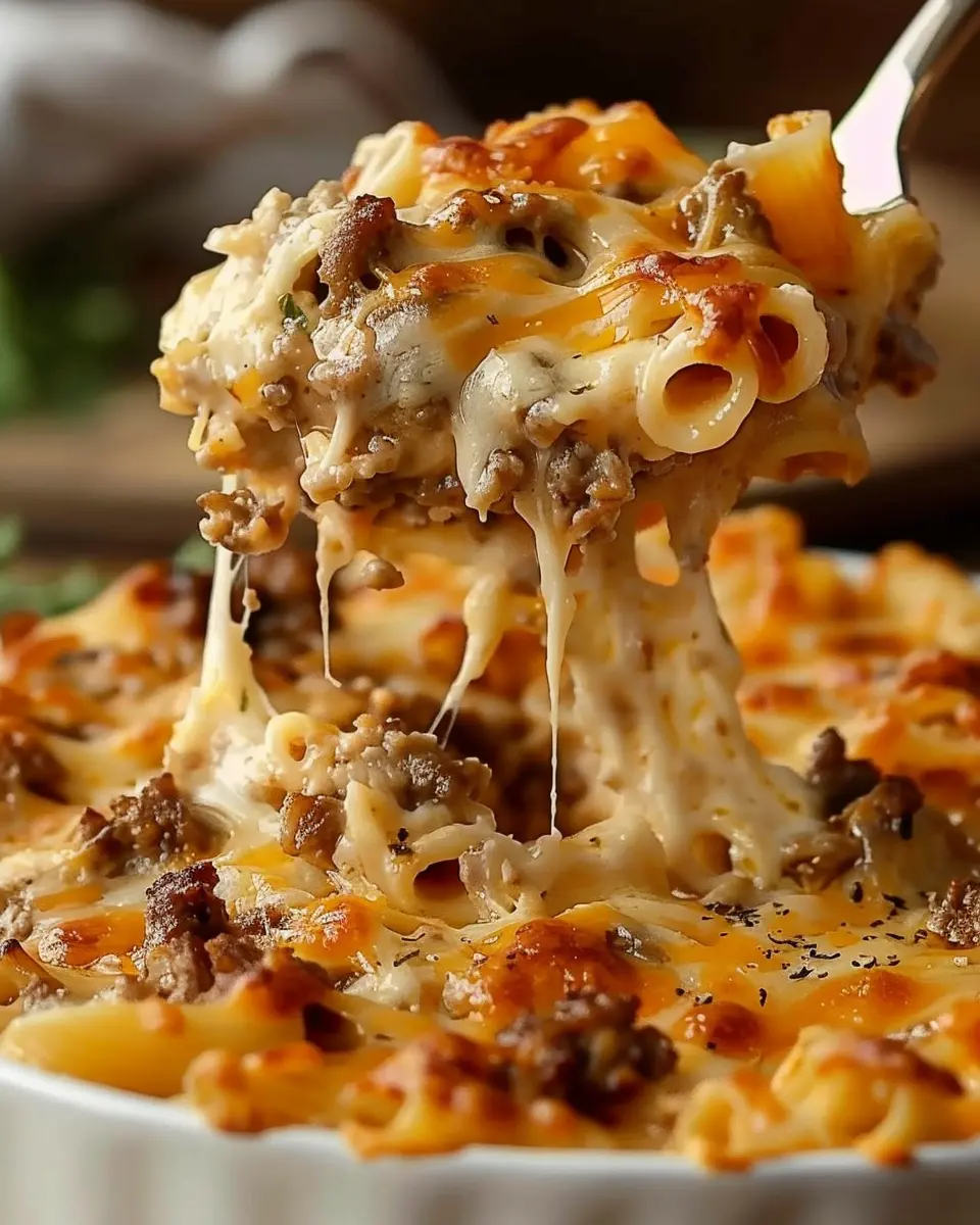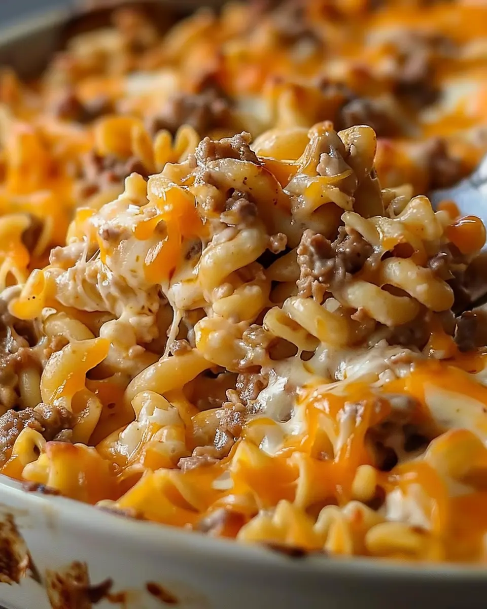 - In a large mixing bowl, combine the cooked ground beef, egg noodles, and the creamy sauce. Stir until everything is well mixed.