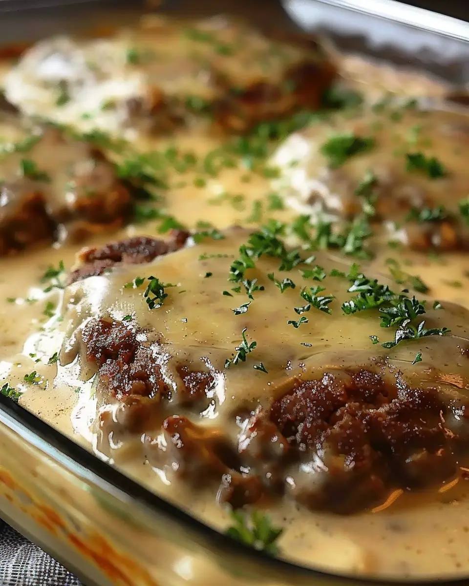 Cover the dish with aluminum foil and bake for about 25-30 minutes. You’ll want to remove the foil during the last 10 minutes of baking to let everything bubble and brown just a bit. This final touch enhances the richness of your Amish Hamburger Steak Bake, making your home smell absolutely divine.
