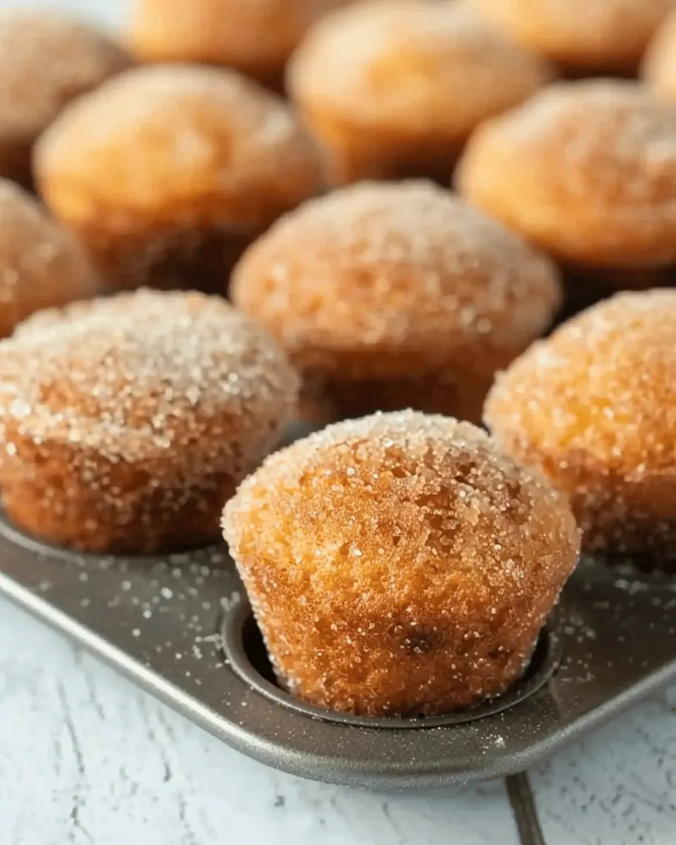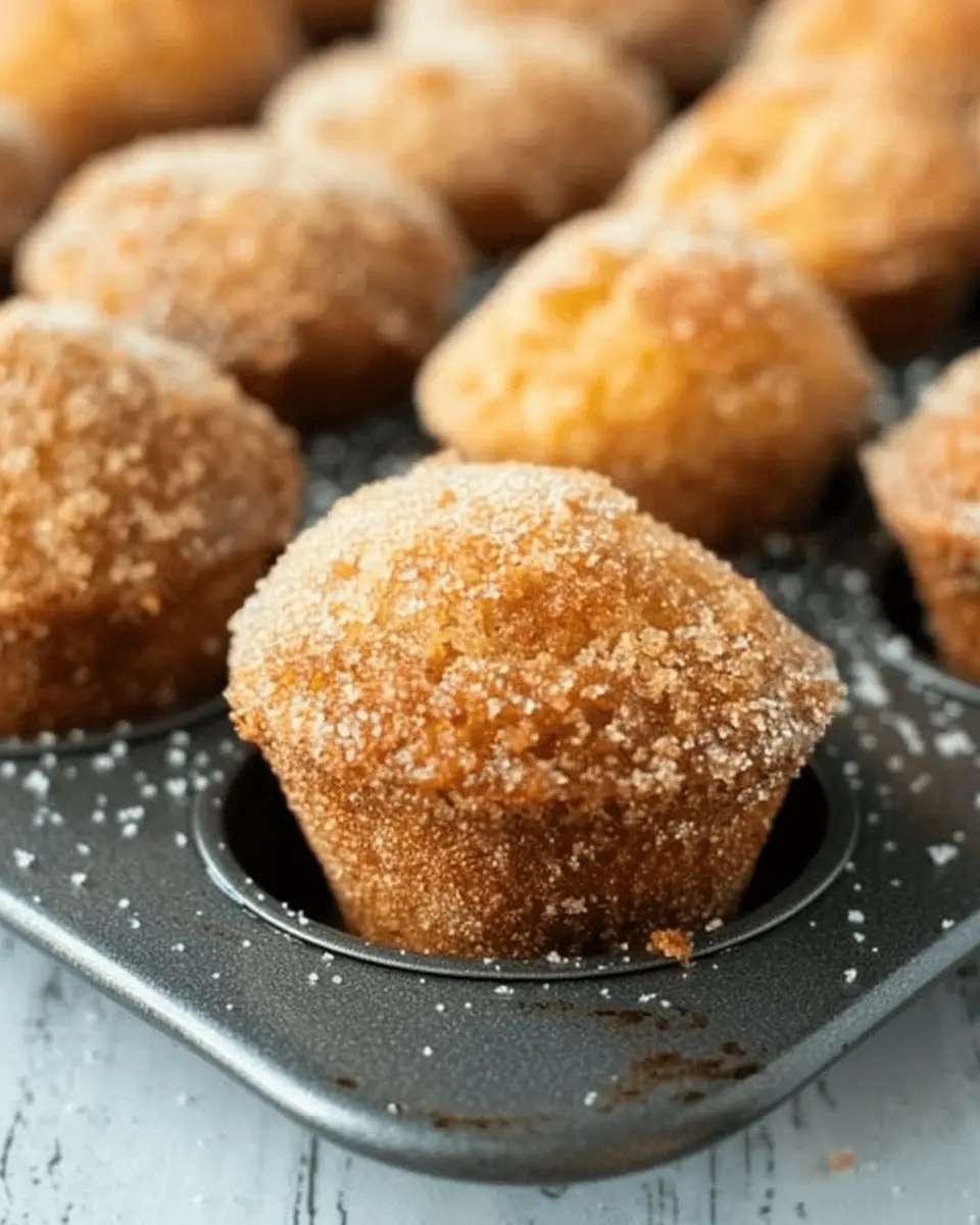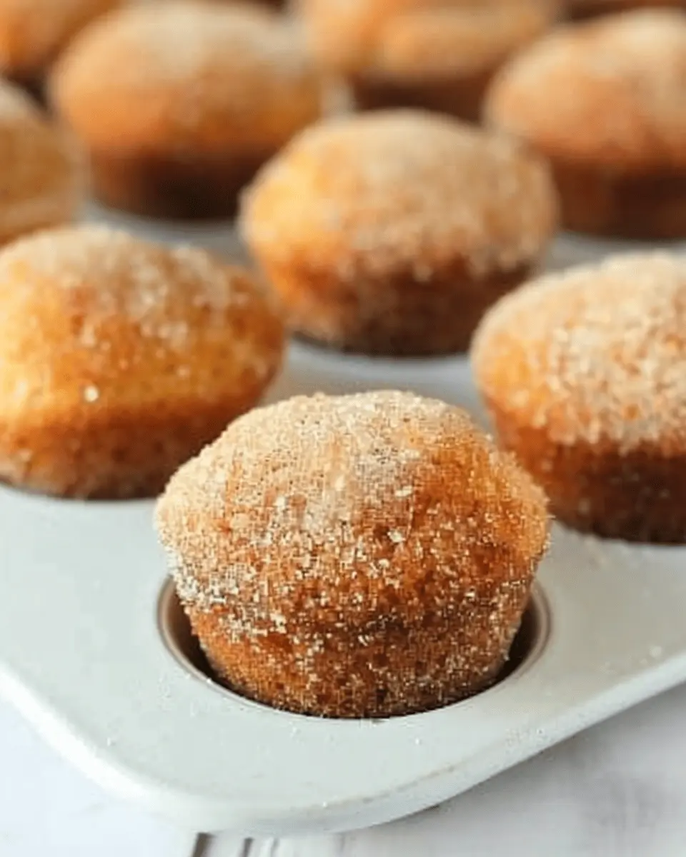 As soon as the muffins come out of the oven, let them cool in the pan for about five minutes before gently tossing them in the cinnamon sugar. This coating will give your muffins that classic donut finish—sweet and irresistible!
