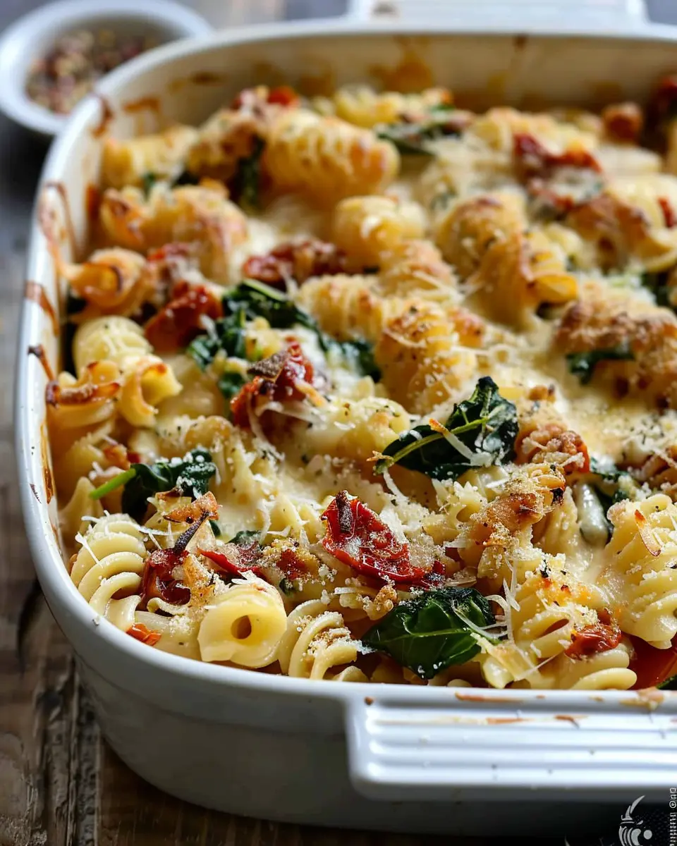 Home » Recipes » Baked Boursin Cheese Pasta: Indulgent Spinach & Sundried Tomato Delight