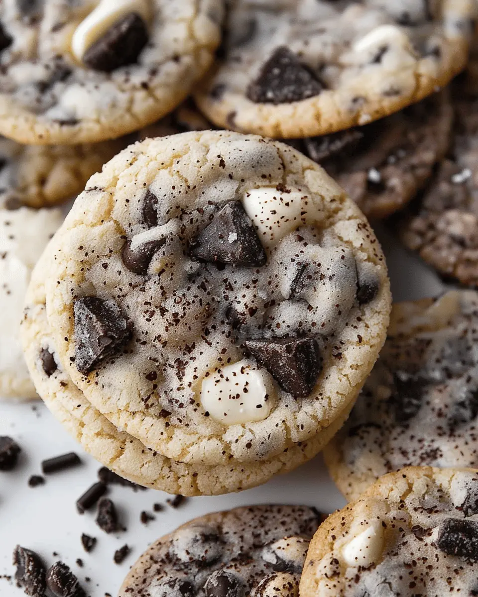 Indulge in the deliciousness of these Cookies and Cream Cookies, perfectly blending rich chocolate and creamy flavors.