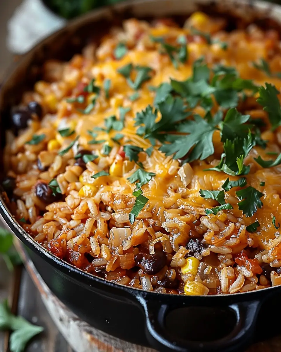 Transfer your cowboy rice casserole mixture into a greased baking dish and spread it evenly. For an even more flavorful kick, you can layer some additional veggie toppings, like corn or even jalapeños, if you enjoy a little spice.