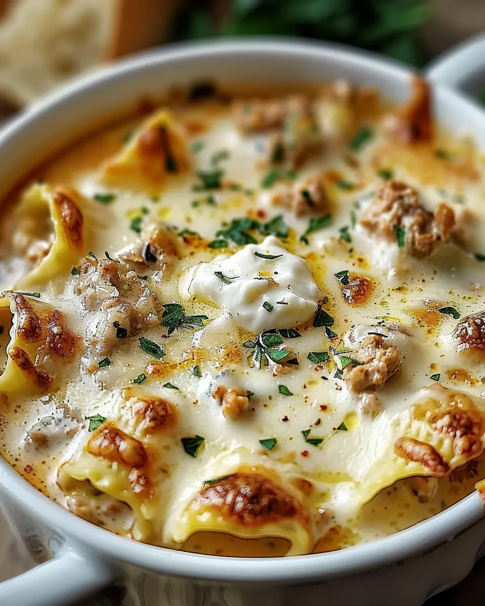 A rich and creamy soup that combines the classic flavors of lasagna with the comfort of soup.