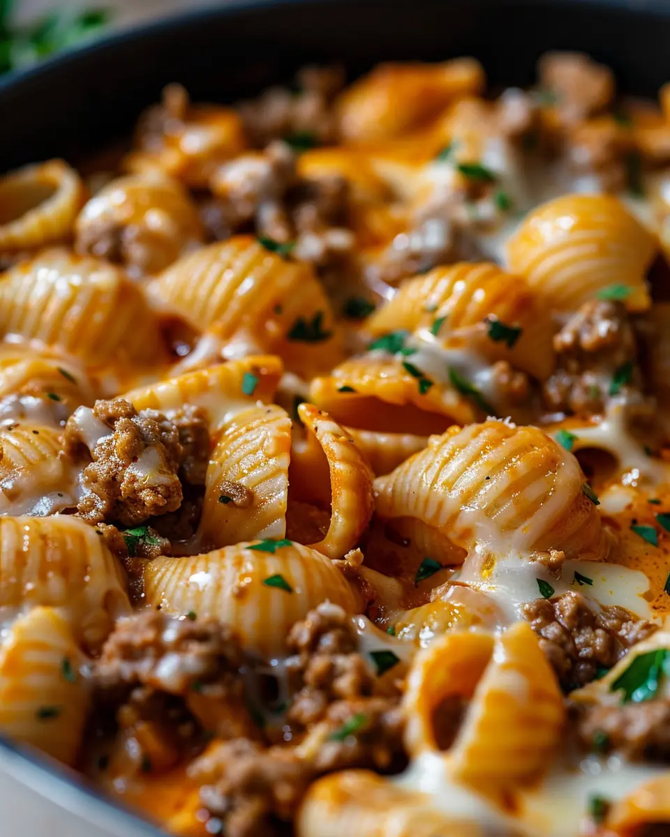 Finally, take a moment to relish your creation. Serve your Creamy Beef and Shells straight from the skillet, garnished with some fresh herbs if you have them—parsley or chives work wonders!