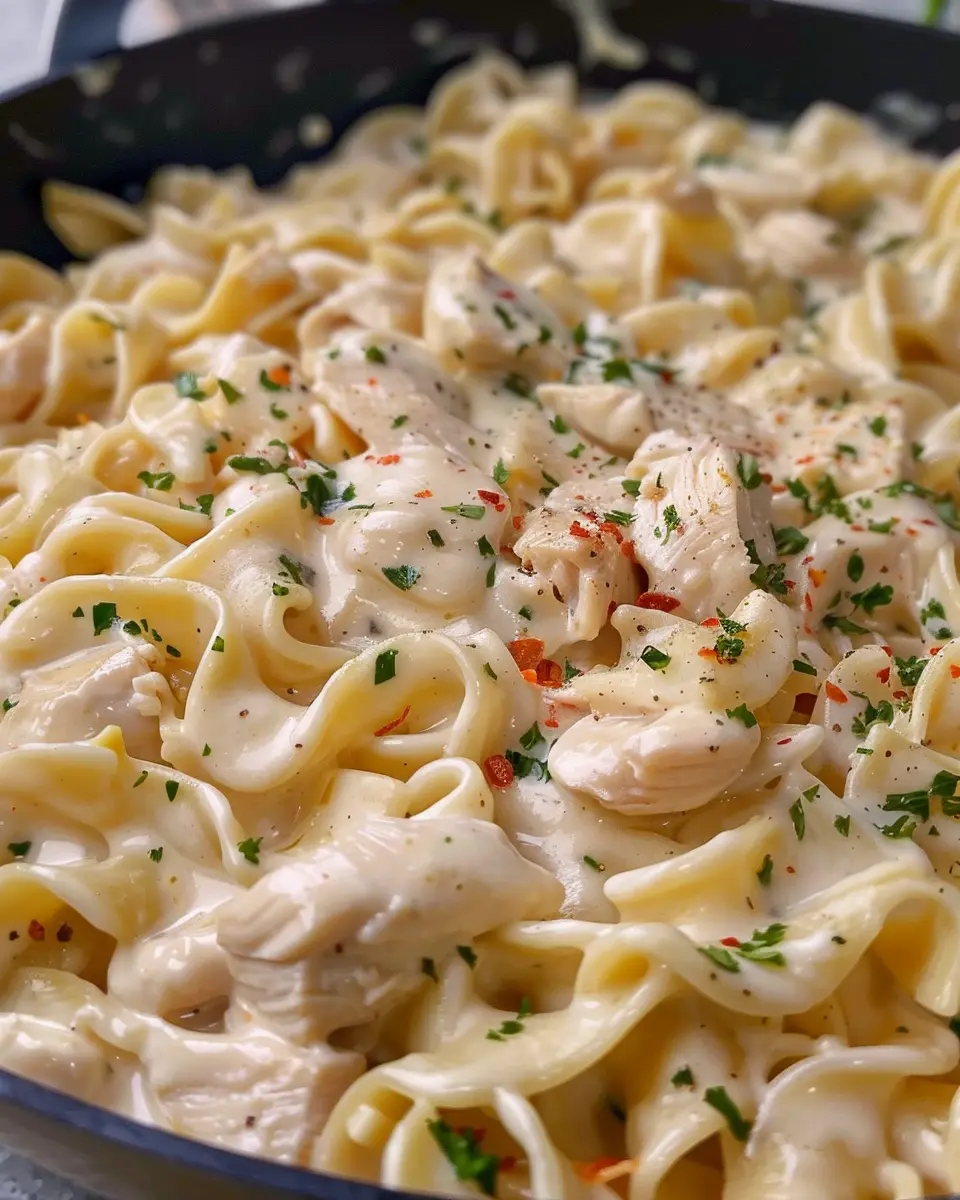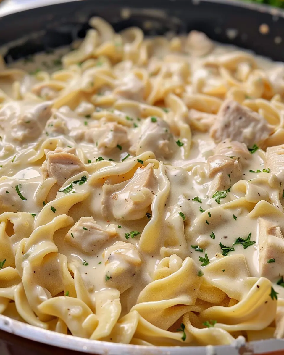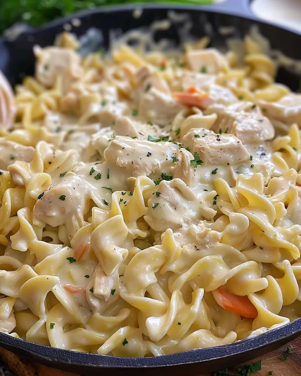 A rich and satisfying dish featuring tender chicken and noodles in a creamy sauce, perfect for a cozy night in.