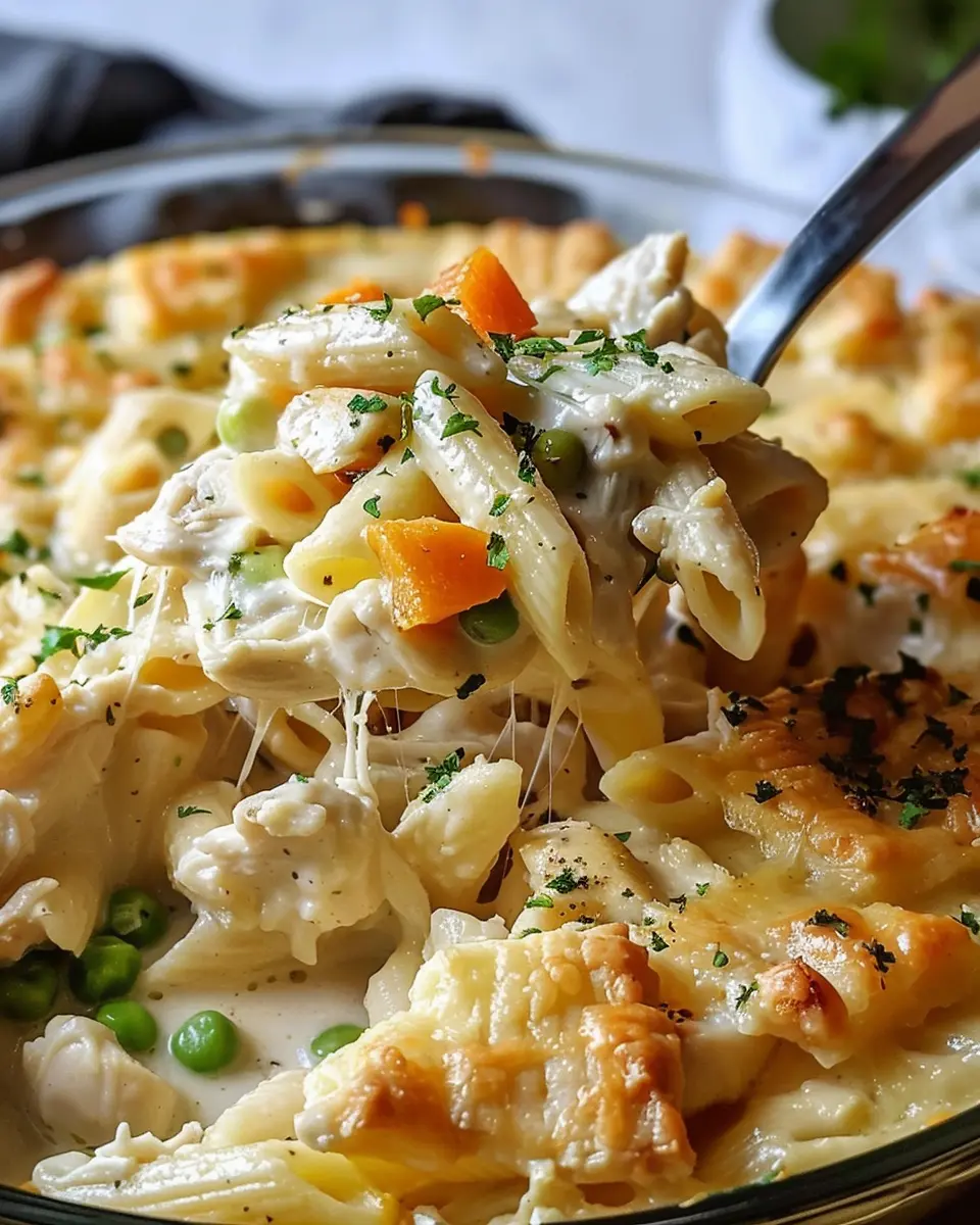 Keywords: Creamy Chicken Pot Pie Pasta, comfort food, pasta recipe, chicken recipe