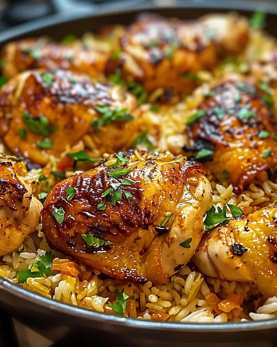 - Place the chicken thighs on top of the rice.