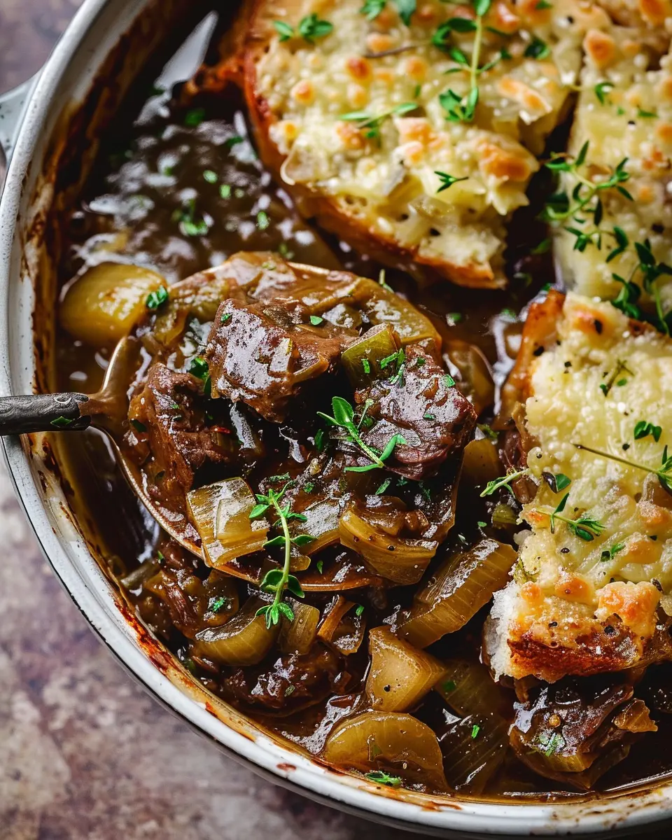 PrintFrench Onion Beef Stew: A Comforting Delight with Turkey Bacon