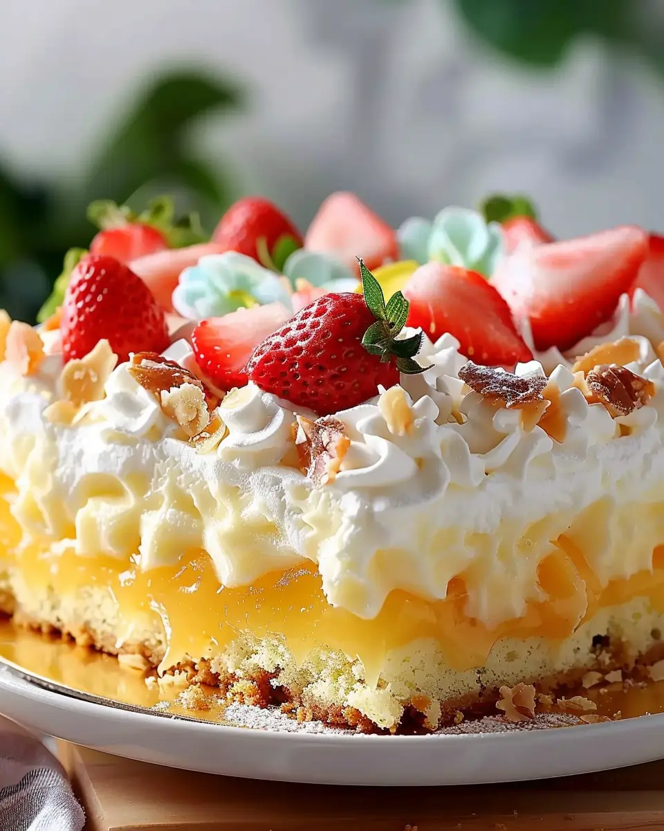 These ingredients meld together beautifully, ensuring a rich flavor profile without overwhelming the senses. Each layer contributes to the cake’s moist texture, making it a crowd-pleaser for barbecues, potlucks, or just a casual evening at home. You can find more about the nutritional benefits of coconut and pineapple at resources like Healthline. Ready to dig in? Let’s whip up some sunshine with this tropical treat!
