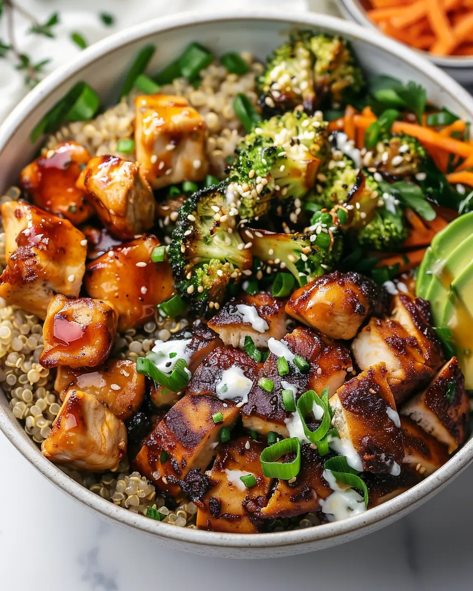 This bowl is a game changer for anyone looking to elevate their meal prep game. Quinoa serves as a fantastic base, rich in protein and fiber, making it an ideal choice for those long days when you need sustained energy. The combination of hot honey chicken, drizzled with a spicy-sweet glaze, introduces a delightful kick that keeps your taste buds engaged and your meals exciting. According to a study from Harvard Health about the benefits of grains, quinoa stands out as a superior option among whole grains due to its complete amino acid profile.