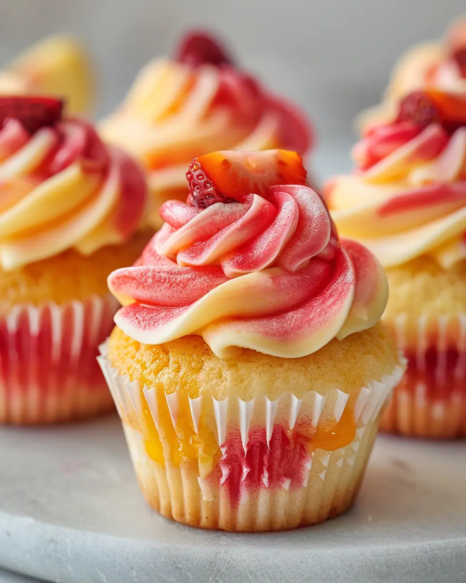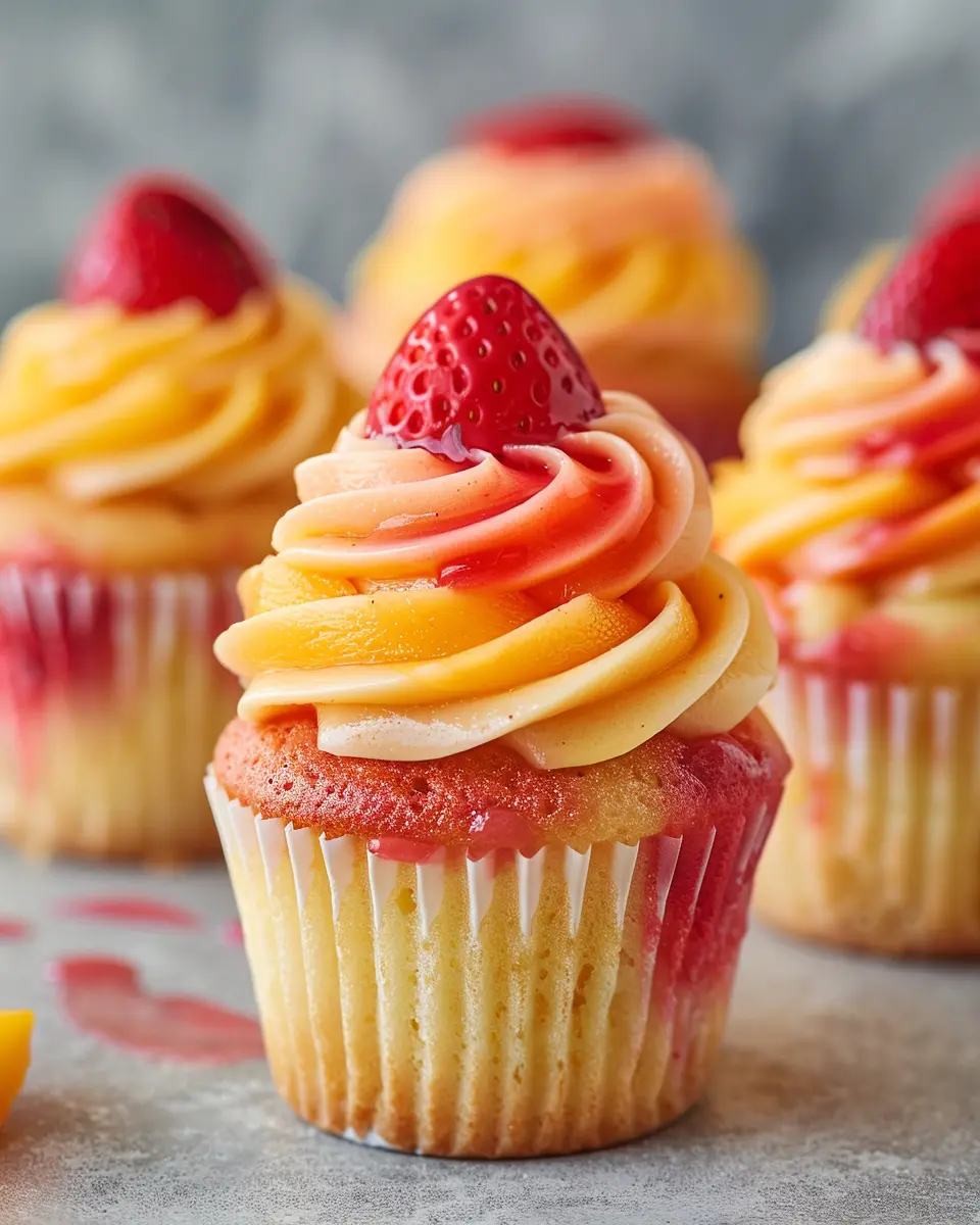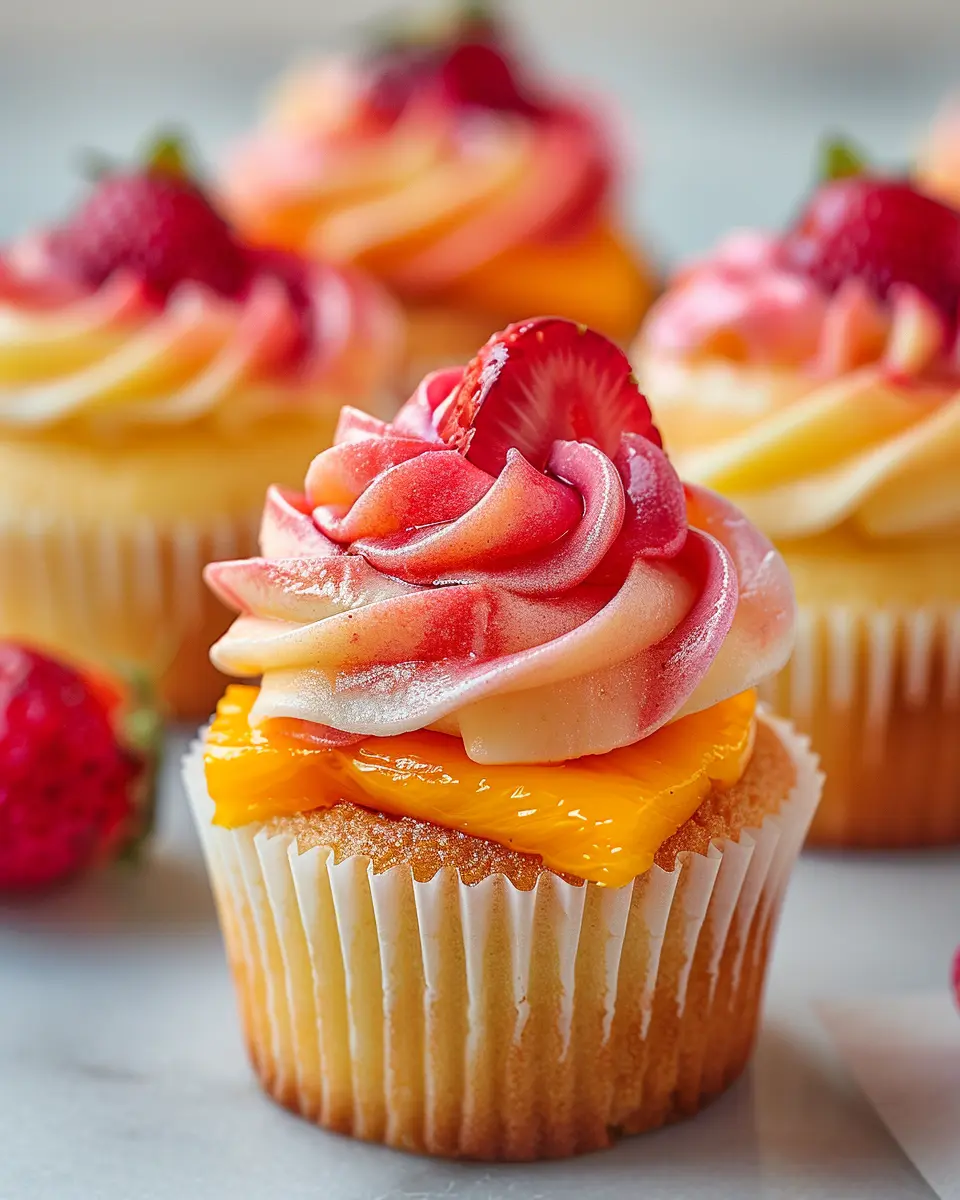 A delightful recipe for Mango Strawberry Sunset Cupcakes, perfect for any occasion.