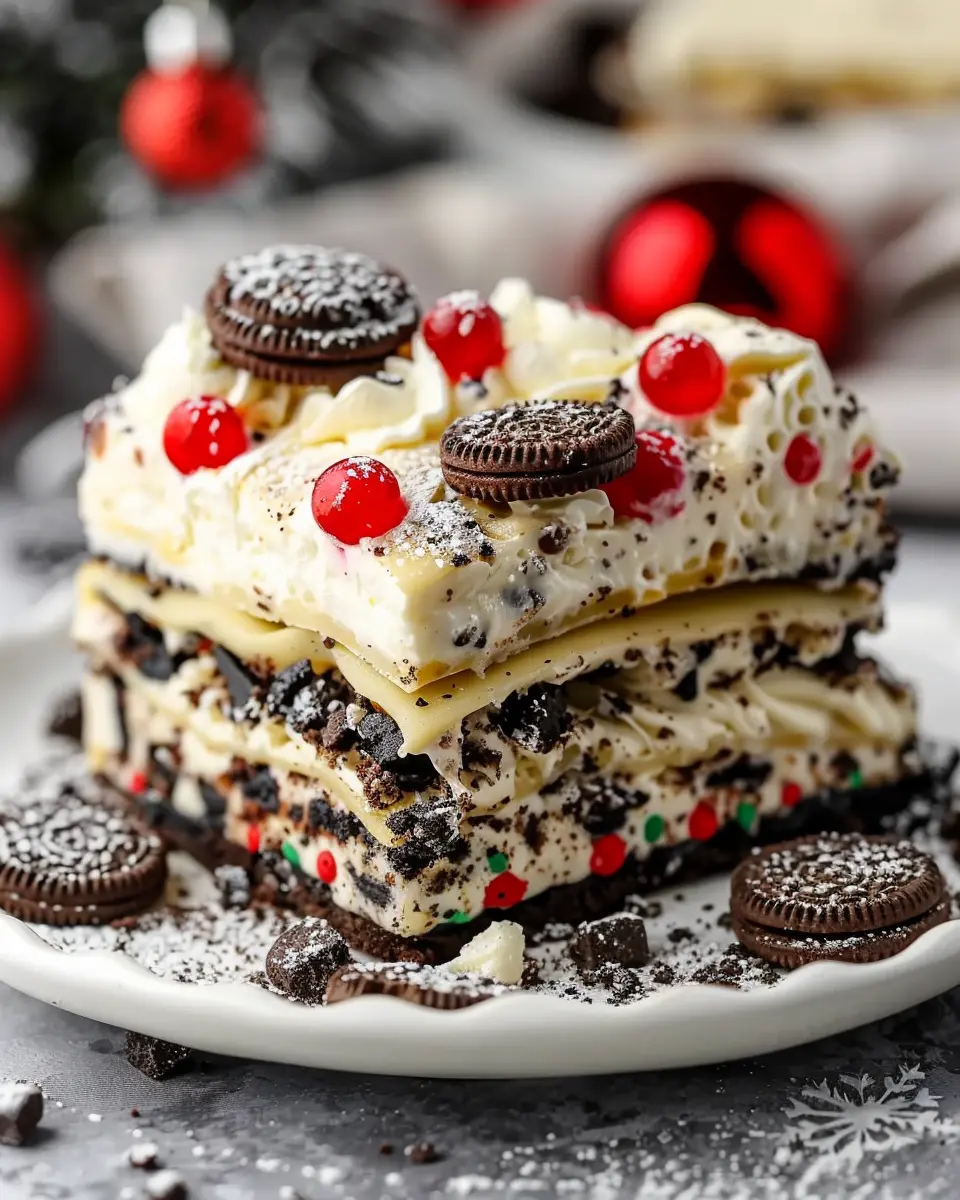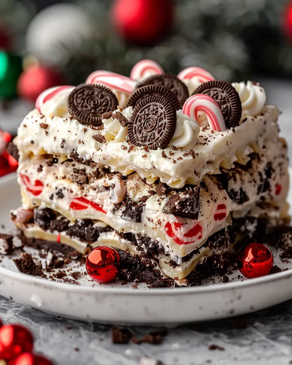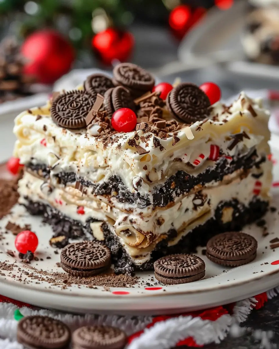 Keywords: No-Bake Christmas Oreo Lasagna, holiday dessert, Oreo lasagna