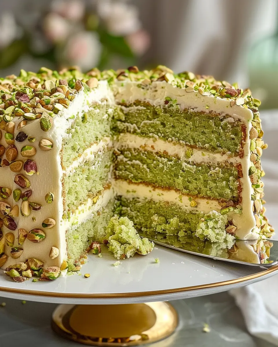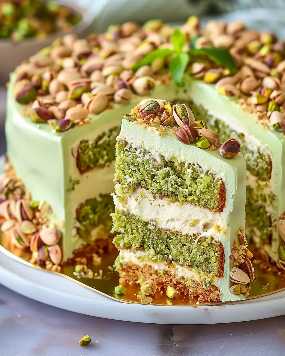 This Pistachio Mascarpone Layer Cake is a rich, indulgent dessert perfect for celebrations.