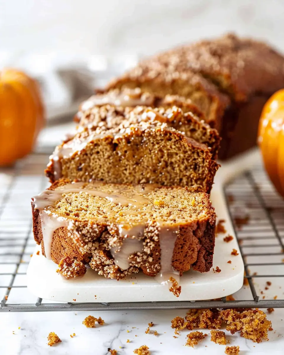 Enjoy the warm flavors of autumn with this delicious pumpkin bread topped with a sweet maple glaze. Perfect for cozy gatherings or a simple treat.