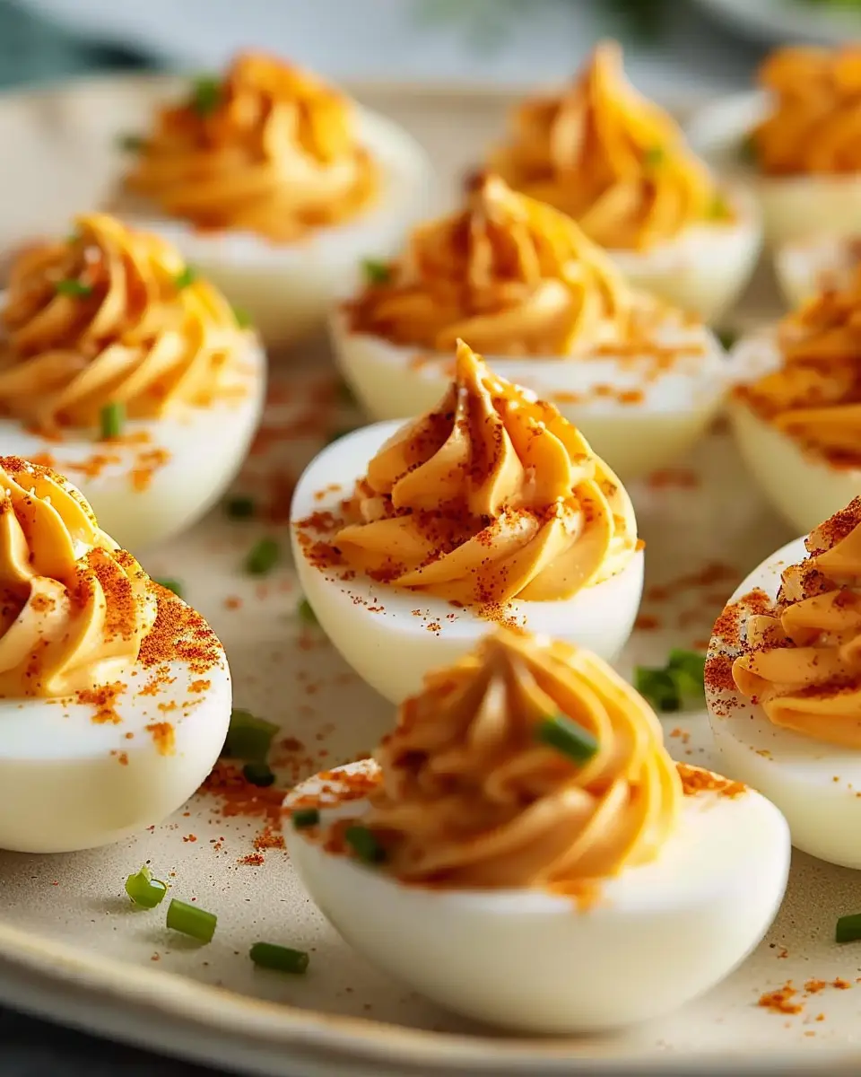 Garnish with Style: Top each egg with a sprinkle of paprika or a small dollop of sriracha for that extra kick. Chopped herbs like chives or parsley can also add a fresh, vibrant touch.