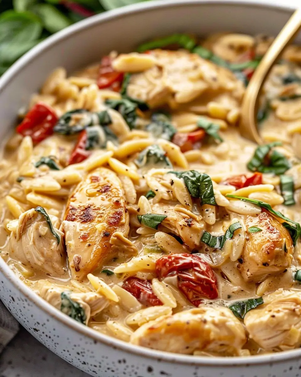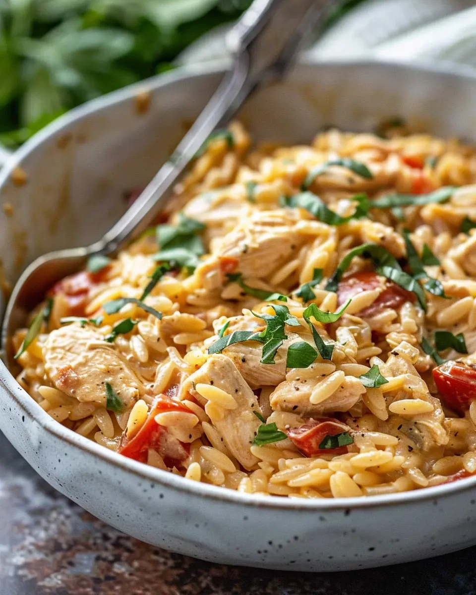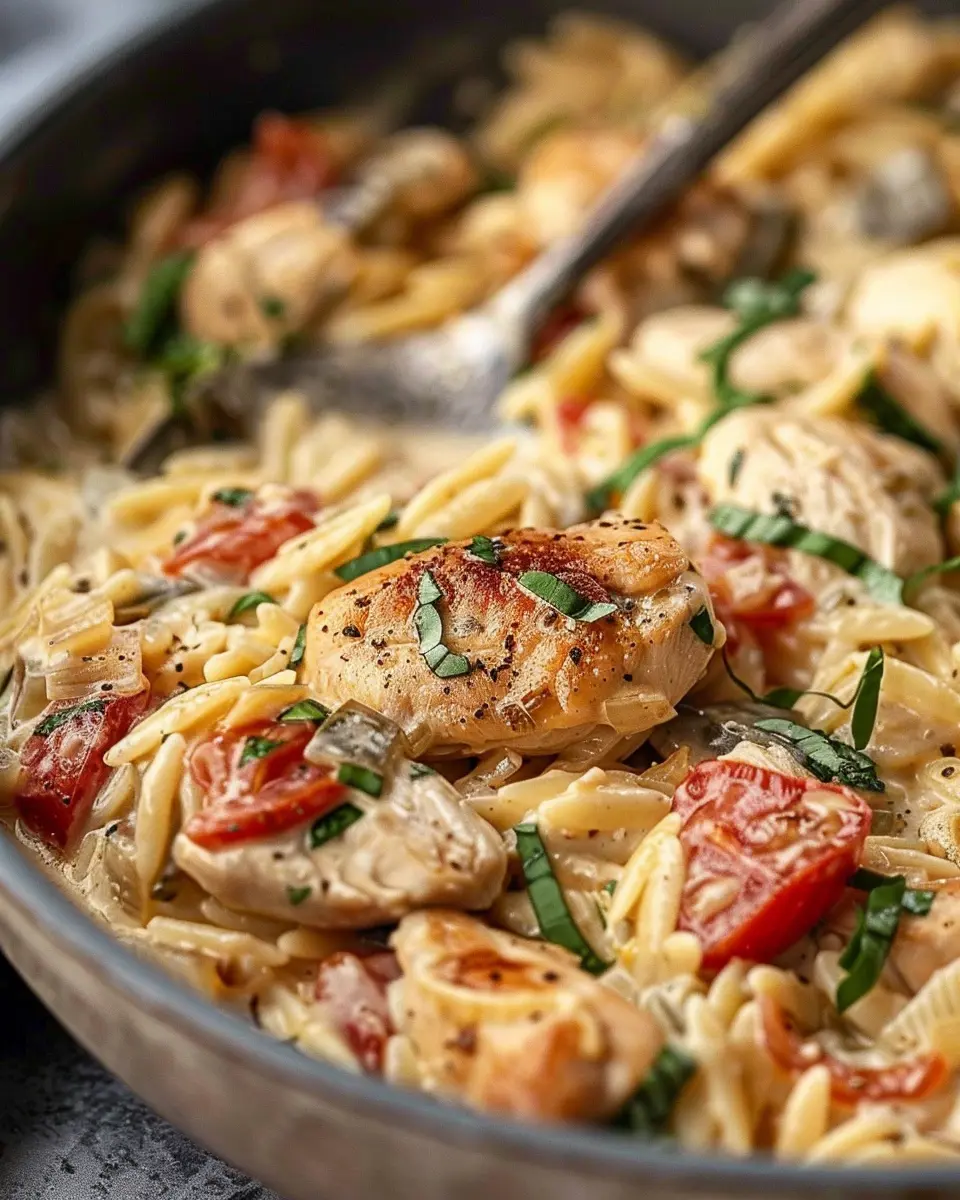 A creamy and flavorful dish made with tender chicken, orzo pasta, and a blend of Italian spices.