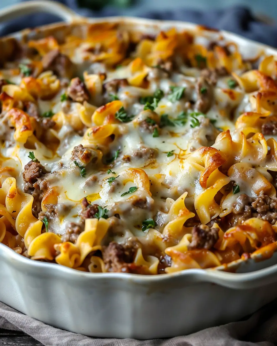 Flexible Ingredients: One of the best things about casseroles is their adaptability. Have leftover turkey bacon or chicken ham? Toss it in. Want to switch up the cheese? Go for it! Packed with essential nutrients like protein from the beef and carbs from the noodles, this dish also allows for a variety of flavors.