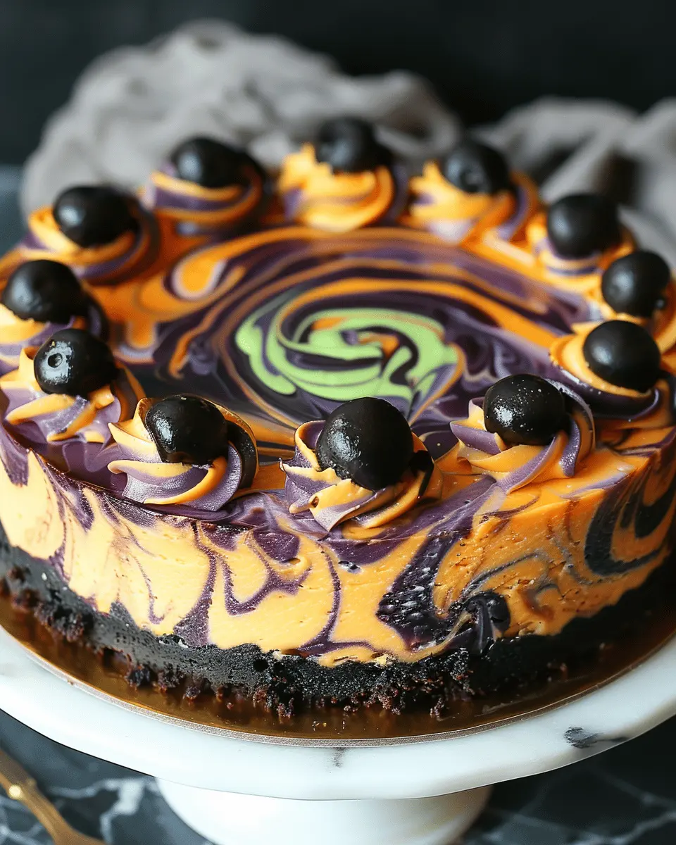 A rich and creamy cheesecake with a spooky twist, perfect for Halloween gatherings.